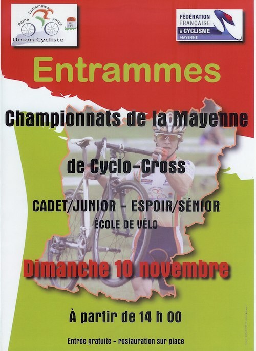 Le Championnat de la Mayenne de Cyclo-Cross se déroulera le dimanche 10 novembre 2013 à ENTRAMMES organisé par UC Entrammes Parné Forcé.