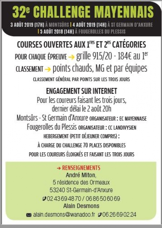 Challenge Mayennais 2019: Courses ouvertes aux 1ères et 2èmes catégories