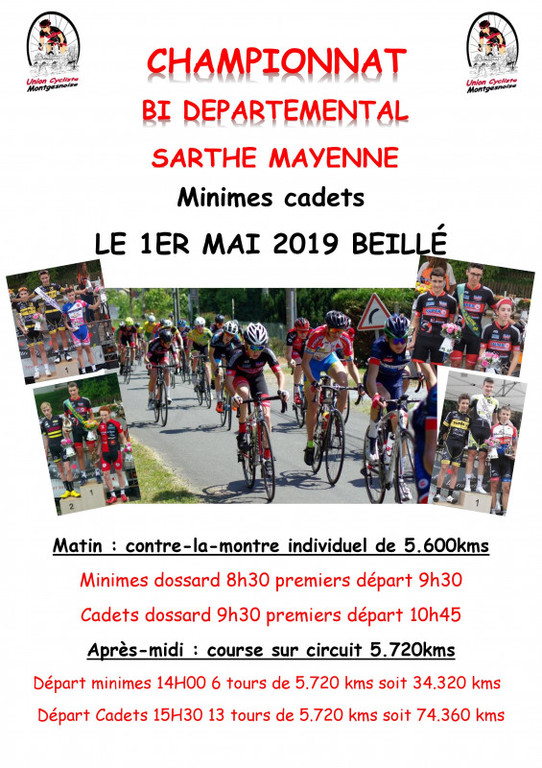 L'UC Montgesnoise organise le mercredi 1er mai le championnat bi-départemental Sarthe-Mayenne des catégories minimes et cadets Hommes.