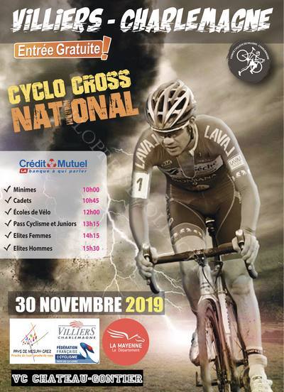 Le Comité Cycliste de Villiers Charlemagne et le VC Château Gontier organisent un cyclo-cross national à Villiers Charlemagne (53) le 30 novembre 2019.