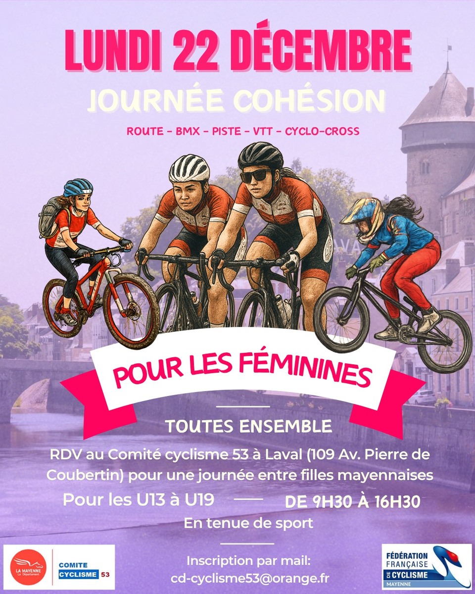 RENDEZ-VOUS LE LUNDI 22 DECEMBRE POUR UNE JOURNEE SPORTIVE ET CONVIVIALE EN TRE FILLES MAYENNAISES DE LA CAT U13 A U19