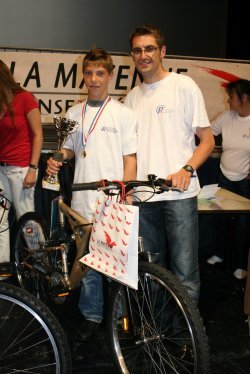photo ci jointe :avec Martin qui repart avec coupe, médaille et VTT et Samuel CHEVAL Animateur Sportif au Comité Cyclisme 53 et moniteur de prévention routière à LAVAL .