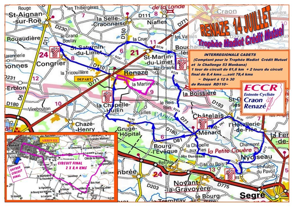 Le mardi 14 juillet 2015 , L'EC Craon Renazé organise le Trophée Madiot Cadet et le Challenge 53 Chocolaterie Monbana.