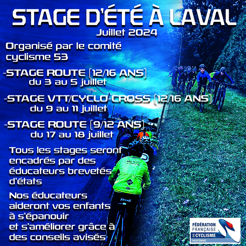 Voici les dates des stages que le comité cyclisme 53 organisera au mois de Juillet à Laval