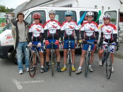LA SELECTION DE LA MAYENNE ETAIT COMPOSEE DE 4 JUNIOR 1ERE ANNEE ET 1 JUNIOR 2; Les coureurs ont découvert le très haut niveau dur apprentissage, mais de bonne augure pour l'année prochaine . jean marie, mike et emmanuel termine l'épreuve . martin abandon sur chute et pierre dans la dernière étape. merci à l'encadrement: Samuel, François , Dominique et joseph . 171 SABLE Pierre J1 172 COINTET Emmanuel J2 173 GRANGER Mike J1 174 GUESNERIE Jean-Marie J1 175 LEBACLE Martin J1 ETAPE 1 1 22 BOSMAN Gert-Jan DJL NED 00" 2 91 VERSTRAETE Ludwig WDM BEL ' ' 3 182 COLAS Vincent CDA FRA ' ' 4 214 LE LAVANDIER Mathieu MBN FRA ' ' 5 233 *ANSARD Anthony VCB FRA ' ' 6 194 *LE GAC Olivier FIN FRA ' ' 7 41 HIRSCH Sebastian TDS DEN ' ' 8 242 BRIARD Etienne TNA FRA ' ' 9 155 PIRY Christopher IDF FRA 12" 10 34 *ECKMANN Yannick HTC GER 13" 11 74 PONS Gaëtan VCA BEL ' ' 12 51 BUYSSE Lennert BEL BEL ' ' 13 117 DE ROOZE Niels CTM BEL 19" 14 141 LAFFILLE Ludwig NPC FRA 21" 15 154 *YSSAAD Yannis IDF FRA 23" 16 241 CHAUVIN Benjamin TNA FRA ' ' 17 232 MAERTENS Clément VCB FRA ' ' 18 153 BLANCHON Luc IDF FRA ' ' 19 161 PACHER Quentin DOR FRA ' ' 20 235 PATIN Dimitri VCB FRA ' ' 21 142 CARESMEL Alexis NPC FRA ' ' 22 202 *JAMET Loïc IVE FRA ' ' 23 3 *BRUSSELMAN Twan VAC NED ' ' 24 55 DE MERLIER Giovanni BEL BEL ' ' 25 52 *KERF Jérôme BEL BEL ' ' 26 68 PEELAERS Jeff ACT BEL ' ' 27 152 DA CUNHA John IDF FRA ' ' 28 72 *DELFOSSE Florent VCA BEL ' ' 29 31 CRADDOCK Lawson HTC USA ' ' 30 255 MIRA Anthony ACL FRA ' ' 31 123 THOMASSON Nicolas AUV FRA ' ' 32 87 BELMANS Rutger VOR BEL ' ' 33 105 VAN OVERBEGHE Richard KBA BEL ' ' 34 221 BALGUY William PRY FRA ' ' 35 254 LE PRIELLEC Gildas ACL FRA ' ' 36 75 WERTZ Thomas VCA BEL ' ' 37 103 *CAPIOT Amaury KBA BEL ' ' 38 265 MOREAC Léo OCL FRA ' ' 39 228 *VILLAIN Alexis PRY FRA ' ' 40 151 *BOULONGNE Thomas IDF FRA ' ' 41 162 *LANCE Gontran DOR FRA ' ' 42 131 *DESPEIGNES Erwan PCS FRA ' ' 43 234 BARUZZI Greg VCB FRA ' ' 44 45 JORGENSEN Stefan Linné TDS DEN ' ' 45 93 *VERMEULEN Emiel WDM BEL ' ' 46 213 *LE GAL Jordann MBN FRA ' ' 47 73 MELON Quentin VCA BEL ' ' 48 245 *HERVEOU Dragan TNA FRA ' ' 49 181 CAM Maxime CDA FRA ' ' 50 193 LE BUREL Yann FIN FRA ' ' 51 215 LE LAVANDIER Maxime MBN FRA ' ' 52 2 VAN GINNEKEN Sjoerd VAC NED ' ' 53 165 *SOUBES Kévin DOR FRA ' ' 54 95 MUS Aloïs WDM BEL ' ' 55 251 *HENRY Rodolphe ACL FRA ' ' 56 43 OLLEGAARD Mathias TDS DEN ' ' 57 201 LECLAIRE David IVE FRA ' ' 58 113 *TOUQUET Joren CTM BEL ' ' 59 253 LE BOUCHER Thomas ACL FRA ' ' 60 104 WIJNANTS Nick KBA BEL ' ' 61 83 *STERCKX Lowie VOR BEL ' ' 62 264 MARQUET Tanguy OCL FRA ' ' 63 115 *VANBESIEN Thomas CTM BEL ' ' 64 133 HUSSLER Jérémy PCS FRA ' ' 65 27 *DIJKSTRA Martijn DJL NED ' ' 66 197 LE ROUX Tangi FIN FRA ' ' 67 25 VAN RHEE Joey DJL NED ' ' 68 107 VAN BROEKHOVEN Bram KBA BEL ' ' 69 33 WIGHT Stuart HTC CAN ' ' 70 134 *NEDEAU Pierre PCS FRA ' ' 71 42 SCHWARTZ Frederik Bjorke TDS DEN ' ' 72 132 *DUFOUR Valentin PCS FRA ' ' 73 128 *CONVERT Rémi AUV FRA ' ' 74 64 CRAEGHS Maarten ACT BEL ' ' 75 184 TANGUY Adrien CDA FRA ' ' 76 211 DESREUMAUX Romain MBN FRA ' ' 77 44 *FOLSACH Casper TDS DEN ' ' 78 172 COINTET Emmanuel MAY FRA ' ' 79 224 *THEVENOT Guillaume PRY FRA ' ' 80 183 *BREDIN Maxime CDA FRA ' ' 81 212 GUYOMARD Adrien MBN FRA ' ' 82 173 *GRANGER Mike MAY FRA ' ' 83 226 VERGEREAU Thomas PRY FRA ' ' 84 4 COPPENS Jens VAC NED ' ' 85 101 *BOONS Ruben KBA BEL ' ' 86 206 POLI Steven IVE FRA ' ' 87 223 GOURET Jean-Marie PRY FRA ' ' 88 84 BEAUSAERT Dieter VOR BEL ' ' 89 13 DORFMANN Remy AVX NED ' ' 90 112 FRANSSEN Wout CTM BEL ' ' 91 21 BOTTER Rudy DJL NED ' ' 92 263 MADEC Jean-Charles OCL FRA ' ' 93 191 COQUIL Sébastien FIN FRA ' ' 94 145 FOBERT Arthur NPC FRA ' ' 95 26 *NIJMEIJER Maurice DJL NED ' ' 96 174 *GUESNERIE Jean-Marie MAY FRA ' ' 97 111 AERTS Alexander CTM BEL ' ' 98 94 VANDIERENDONCK Gert WDM BEL ' ' 99 1 *MOERLAND Paul VAC NED ' ' 100 62 VANDENBOGAERDE Jens ACT BEL ' ' 101 53 *VAN LANDUYT Billy BEL BEL ' ' 102 65 *DE BUYST Jasper ACT BEL ' ' 103 205 *HENRY Jordane IVE FRA ' ' 104 136 *BOIRIVANT Clément PCS FRA ' ' 105 237 *CORDIER Julien VCB FRA ' ' 106 5 *JANSEN Frank VAC NED ' ' 107 144 HUYGENS Maxime NPC FRA 36" 108 185 *TASSEL Ronan CDA FRA ' ' 109 143 DREYER Lucas NPC FRA ' ' 110 81 *MACHIELS Stijn VOR BEL 44" 111 54 *MAES Alexander BEL BEL 53" 112 178 *LEBACLE Martin MAY FRA ' ' 113 82 *MERTENS Tom VOR BEL 56" 114 171 *SABLE Pierre MAY FRA 01'06" Hors Délai 115 11 TROOST Bart AVX NED 2h52'20" 16'49" 115 12 *WESTRA Jip AVX NED 3h08'24" 32'53" 115 92 VIAENE Jonas WDM BEL 3h08'24" ' ' 115 163 *HURTEL Florian DOR FRA 3h08'24" ' ' 115 166 *COMBELAS Clément DOR FRA 3h05'55" 30'24" 115 243 QUESNEL Amaury TNA FRA 3h08'24" 32'53" 115 257 *BONNO Félix ACL FRA 2h56'18" 20'47" 116 14 *VAN ENGELEN Adne AVX NED 3h08'24" 32'53" 116 71 *CONVENS Louis VCA BEL 3h05'55" 30'24" 116 126 *GRICOURT Clément AUV FRA 3h08'24" 32'53" 116 195 LE ROUX Cédric FIN FRA 3h08'24" ' ' 116 246 *GOSSENS Loïc TNA FRA 3h08'24" ' ' 116 261 *GUILLOUX Mathieu OCL FRA 3h05'55" 30'24" Hors Délai 116 262 LE GAL Benjamin OCL FRA 2h54'48" 19'17" 14 coureur(s). Abandon 15 *DUDINK Jaap AVX NED 32 NEWBURY Anders HTC USA 35 *BOSWELL Austin HTC USA 124 *CALLAOU Yvan AUV FRA 125 *SUDRE Joé AUV FRA 204 *LORANT Clément IVE FRA 2ème étape CLM Réguiny Naizin 1 CRADDOCK Lawson (HOT TUBES CYCLING TEAM) 2 COLAS Vincent (CÔTES D'ARMOR) à 13" 3 VANDENBOGAERDE Jens (AVIA CYCLING TEAM) à 16" 4 LE GAC Olivier (FINISTERE) à 17" 5 BOULONGNE Thomas (ILE DE France) à 18" 6 LE LAVANDIER Mathieu (MORBIHAN) 7 WERTZ Thomas (LOTTO PREDICTOR) à 19" 8 BOSMAN Gert-Jan (DE JONG & LAAN DE PEDDELAARS) à 20" 9 WIGHT Stuart (HOT TUBES CYCLING TEAM) à 20" 10 LE LAVANDIER Maxime (MORBIHAN) à 23" 11 DE ROOZE Niels (IMMO DEJAEGHER LOTTO CT MENEN) 12 BELMANS Rutger (DCM-GB VORSELAAR) à 24" 13 BLANCHON Luc (ILE DE France) 14 DE BUYST Jasper (AVIA CYCLING TEAM) à 25" 15 PONS Gaëtan (LOTTO PREDICTOR) 16 BOONS Ruben (KONINKLIJKE 