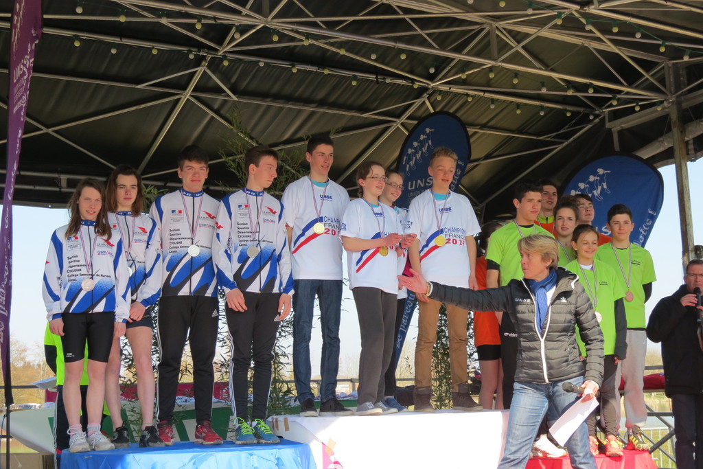 LE COLLEGE EMMANUEL DE MARTONNE DE LAVAL EST DEVENU VICE CHAMPION DE FRANCE DE RUN AND BIKE A BOURG EN BRESSE CE JEUDI 17 MARS 2016.