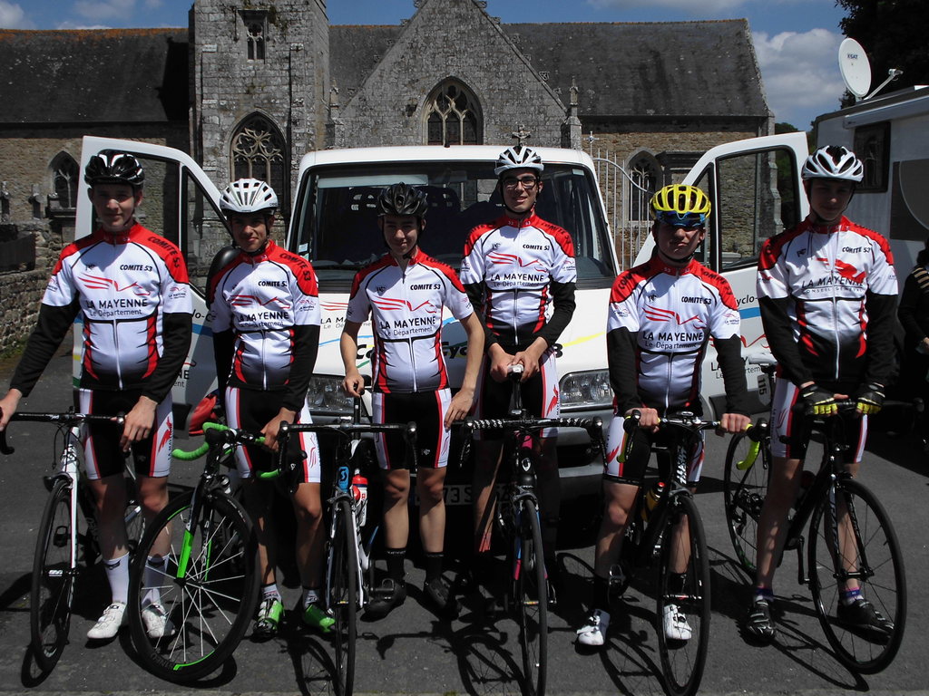 Ce dimanche Jugon-les-Lacs (Côtes-d'Armor) accueillait les 2ème et 3ème manches du challenge interrégions cadets. Le matin, la sélection de la Mayenne prend la 11ème place du contre-la-montre par équipes et l'après-midi une belle 14ème place d'Enzo VERGER, 44ème Corentin Rayon et Victor Culpin 55ème. Abandon pour Pierre, Hugo et Victor.